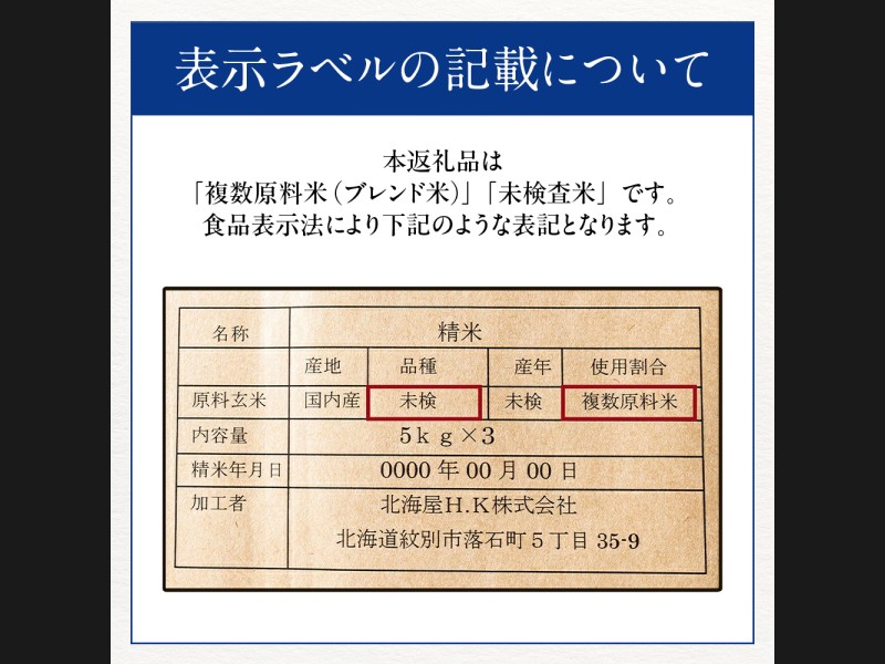 30-126 【年内発送12月15日入金まで】訳あり 北海道ブレンド米15kg(5kg×3) within2025