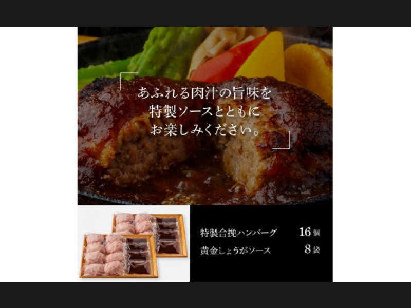 サイズ: 非加熱ハンバーグ130g×16ケ、自家製黄金しょうがソース×8ケ