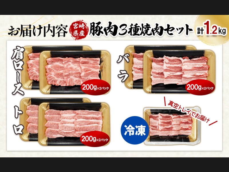 【希少部位・豚トロ入り!】宮崎県産 豚肉 焼肉バラエティセット 合計1.2kg 真空パック 200gずつの便利...