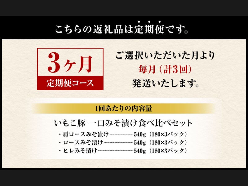 【定期便3回】簡単便利 いもこ豚 ひと口みそ漬け 食べ比べセット 合計1.62kg×3回 総合計4.86kg (肩ロー...