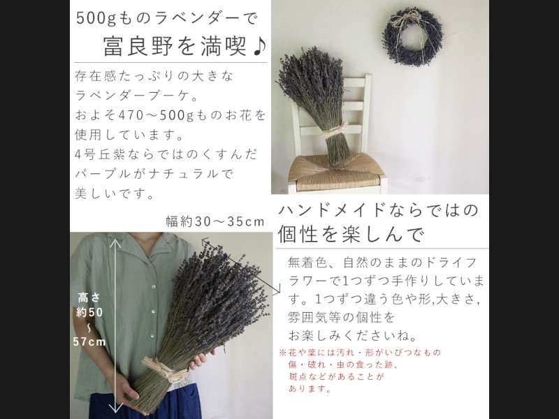 ・使用花材:富良野産ラベンダーおかむらさき(遅咲き4号)・ラフィアリボン(ドライフラワー)