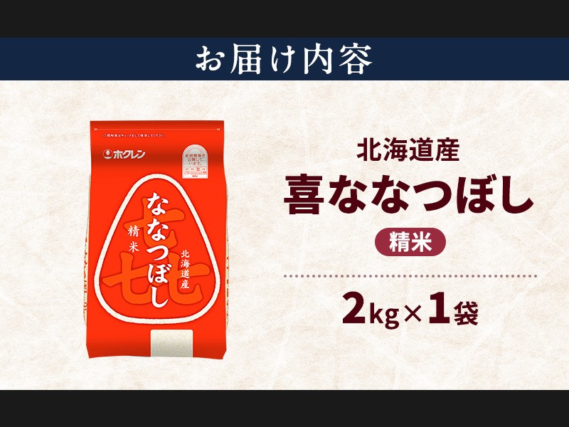 北海道産 喜 ななつぼし 精米 2kg 米 特A 獲得 白米 ごはん 道産米 ブランド米 2キロ お米 ご飯 米 北海...
