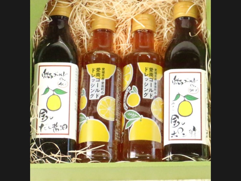 愛南町特産の愛南ゴールドの果汁を使用した調味料のセットです。