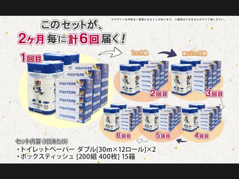 北海道 定期便 2ヶ月毎全6回 日本ハムファイターズ トイレットペーパー 30m 24ロール ボックス ティッシ...