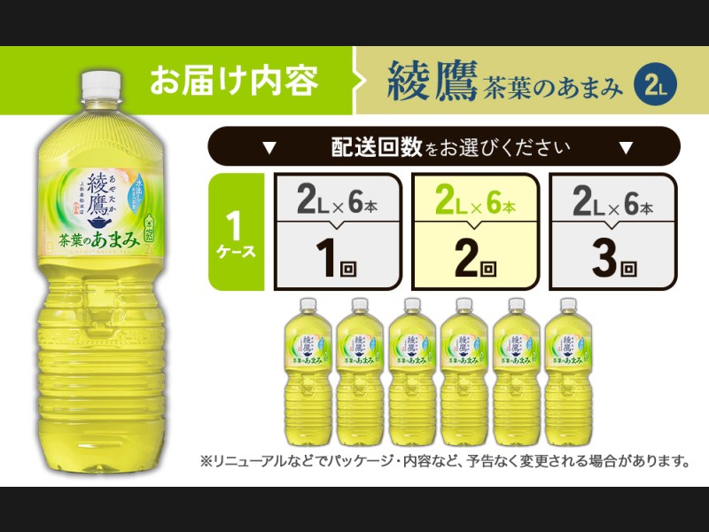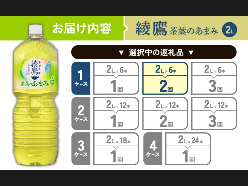 【2回定期便】綾鷹 茶葉のあまみ 2L PET【コカ・コーラ】ペットボトル 1ケース(6本)定期便 2回(12本)セ...
