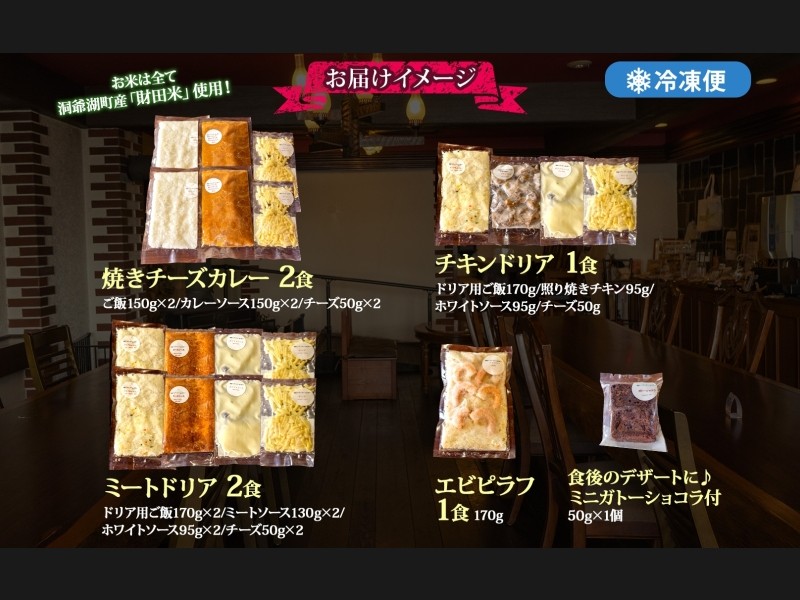 パーラーふくだ特製 焼きチーズカレー 2食 ミートドリア 2食 伊達産鶏の照り焼きチキンドリア エビピラ...