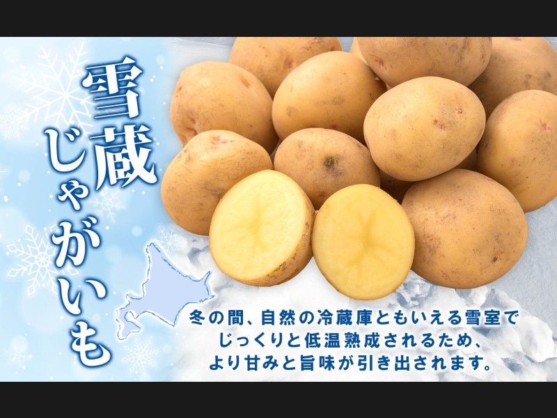北海道で雪蔵貯蔵された「雪蔵じゃがいもとうや」をお届けします。