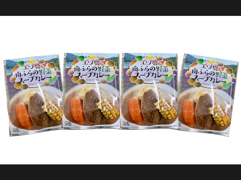 エゾ鹿肉&南ふらの野菜スープカレー4食セット 北海道 南富良野町 エゾシカ 鹿 鹿肉 カレー スープカレ...