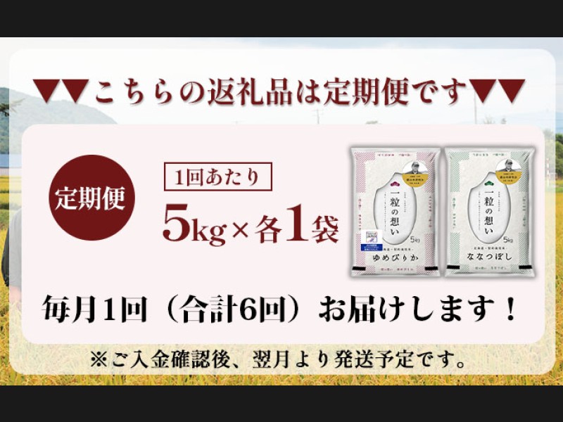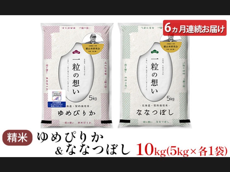 【2025年産米】6ヵ月 定期便 銀山米研究会のお米<ゆめぴりか&ななつぼし>セット 計10kg(各1袋×5kgず...