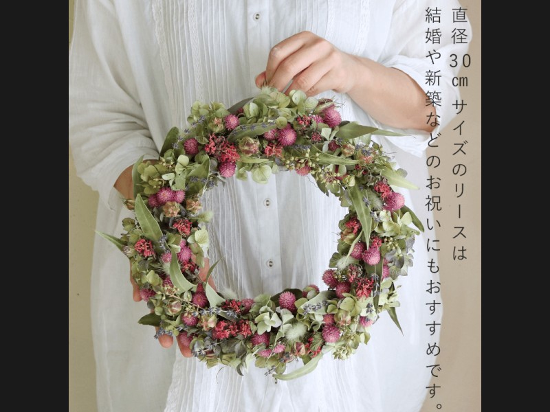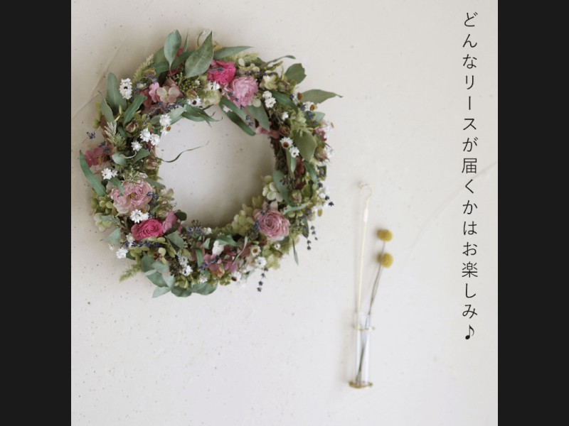 約直径30cmの大きめサイズのドライフラワーリースが届く、お任せセミオーダーリースです。