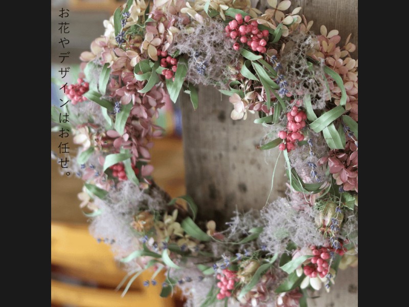 花七曜のこだわりのドライフラワーをつかって北海道富良野で1つずつ丁寧におつくりするリース。