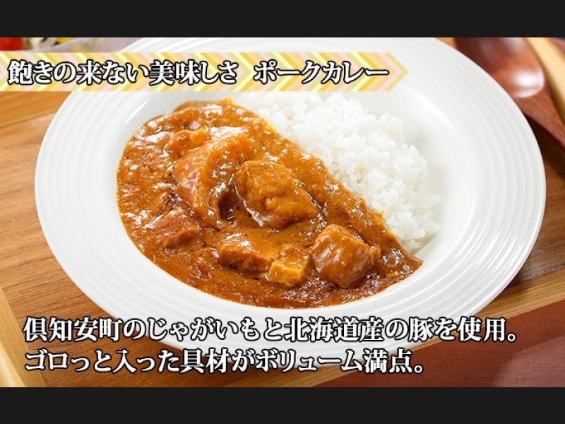 北海道 倶知安町の味覚がぎゅっと詰まった、こだわりのカレー3種(ビーフ・ポーク・牛すじ)の計9個セットです。