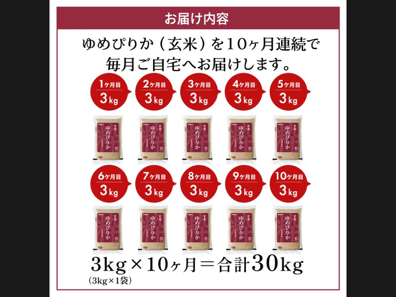 サイズ: ホクレンゆめぴりか玄米3kg(3kg×1袋)を10ヵ月間お届けいたします