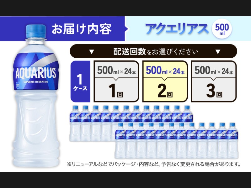 【2回定期便】アクエリアス 500ml PET × 24本 1ケース 毎月 2回 AQUARIUS スポーツドリンク スポーツ飲...