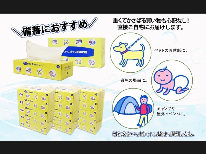 水に流せるティッシュなのでゴミ捨てがらくらく、