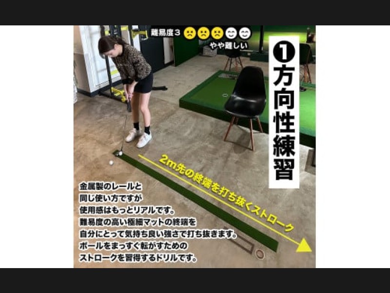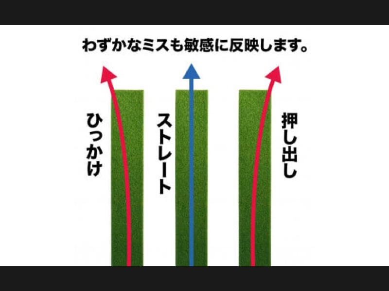 パッティング練習器具として金属製のレールが流行しています。ゴルフ場の芝と全く異なる硬い質感ではたして練習になるのだろうか?そのような素朴な疑問から「精密パターマットを使ったレール」の試作がスタートしましたが、想像通り良いものが完成しました!ゴルフコースのベントグリーン並みのスピード感なので、まっすぐ打ち出す方向性はもちろん、難しいショートパットのタッチをしっかり練習することができます。