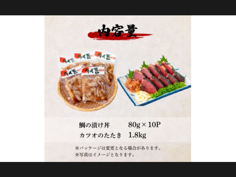 ~四国一小さなまち~ 訳あり 鯛の漬け丼(80g×10P)&カツオのたたき(1.8kg) タイ たい 鰹 かつお 1.8キ...