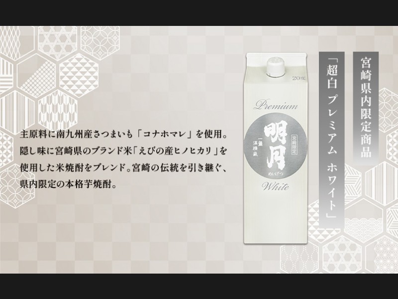 明月プレミアムホワイト 900ml パック 1本 焼酎 芋焼酎 芋 お酒 宮崎県産 九州産 霧島山のめぐみめぐる ...