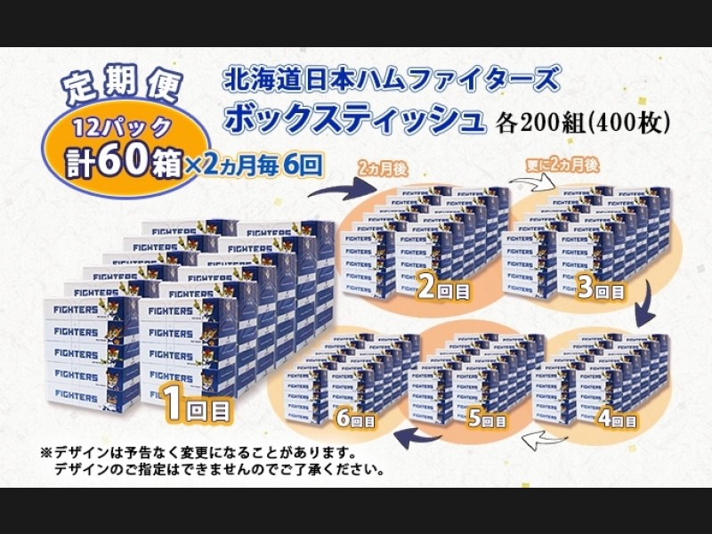 2ヵ月毎 全6回 北海道日本ハムファイターズ ボックスティッシュ 200組 60箱 日本製 まとめ買い リサイ...