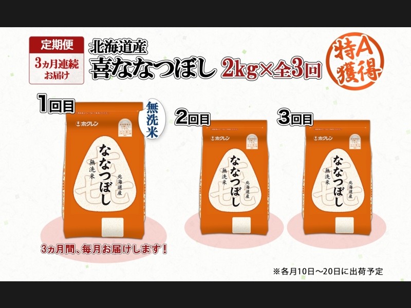 定期便 3ヵ月連続3回 北海道産 喜ななつぼし 無洗米 2kg 米 特A 白米 お取り寄せ ななつぼし ごはん ブ...