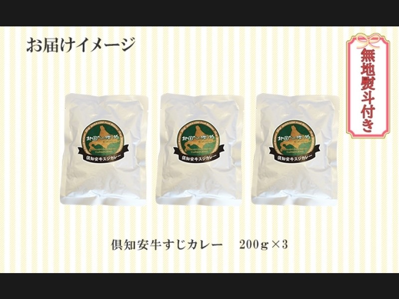 無地熨斗 倶知安 牛すじカレー 中辛 計3個 北海道 レトルト食品 牛すじ 野菜 じゃがいも お取り寄せ グ...