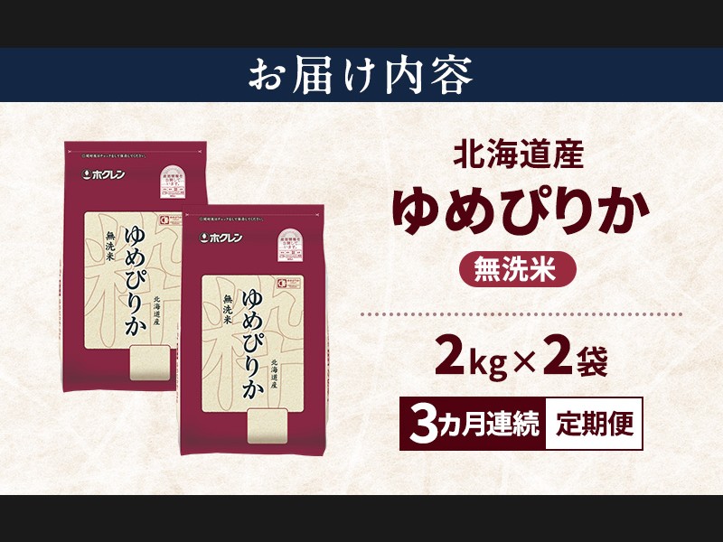 サイズ: ホクレン ゆめぴりか 無洗米 4kg(2kg×2袋)を3ヵ月連続で毎月10~20日にお届けします。