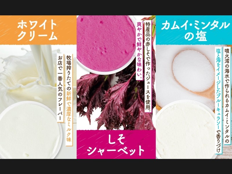 洞爺湖町の特産品「赤しそ」を手摘みし作ったジュースを使用したオリジナルのシャーベット。