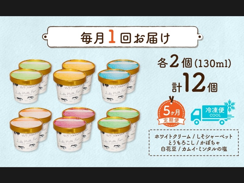 定期便 5ヵ月 連続 全5回 北海道 まきばのジェラート 6種 各2個 計12個 セット ジェラート ミルク 赤し...