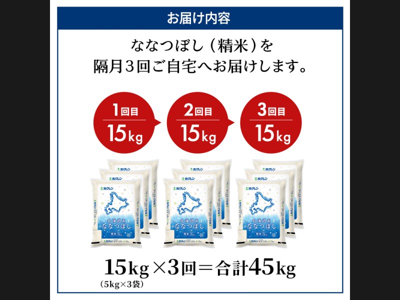 サイズ: ホクレン北海道ななつぼし精米15kg(5kg×3袋)を隔月3回お届けいたします