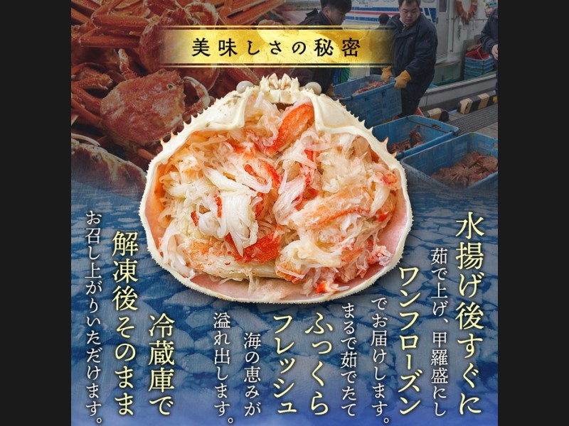 茹でたてのような美味しさを、食べやすい甲羅盛りでぜひご賞味ください。