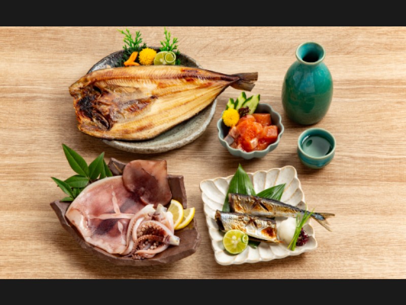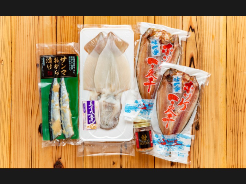 サイズ: 一夜干し真ほっけ開き(約230~260g) 2枚、サンマおから漬け2匹、鮭親子漬け150g、一夜干しいか開き2枚