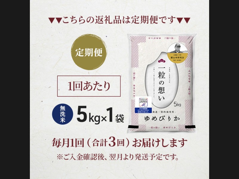 【 2026年産米 新米 予約 】3ヵ月連続お届け 銀山米研究会の無洗米<ゆめぴりか>5kg(5kg×1袋) ご飯 ...