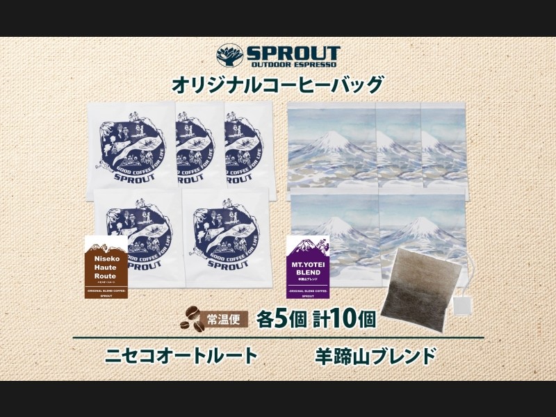 自然の「楽しい」があふれるニセコエリアのおしゃれなロースタリーカフェ「SPROUT」が、こだわりの自家焙煎で作った「オリジナルコーヒーバッグ 2種」セットです!