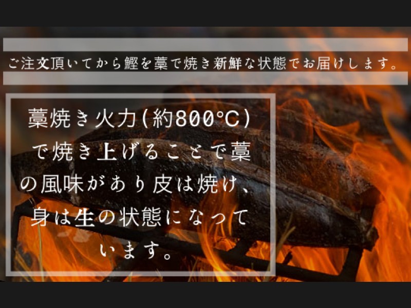 臭みの無い良質なカツオはさばいてみないとわかりません。厳選したカツオだけを使用して、わら焼き特有の高火力と香りでタタキに仕上げています。