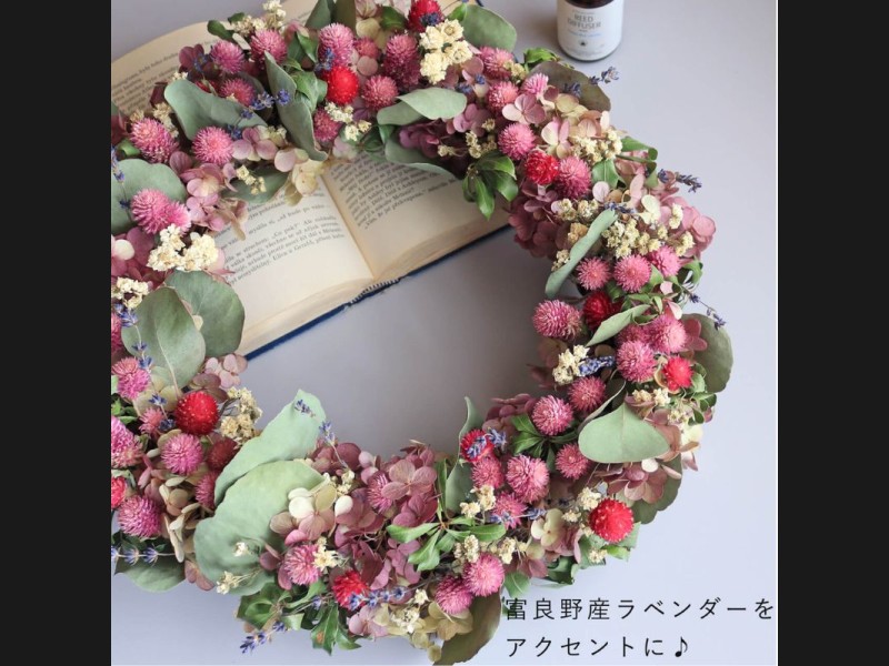 富良野 花七曜 セミオーダーリース 特大 * ピンク フルムーン ◆ ドライフラワー