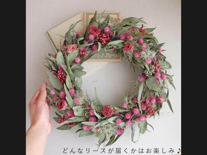どんなリースが届くのかはお楽しみ。 届くまでデザインがわからないのも楽しみの一つ。