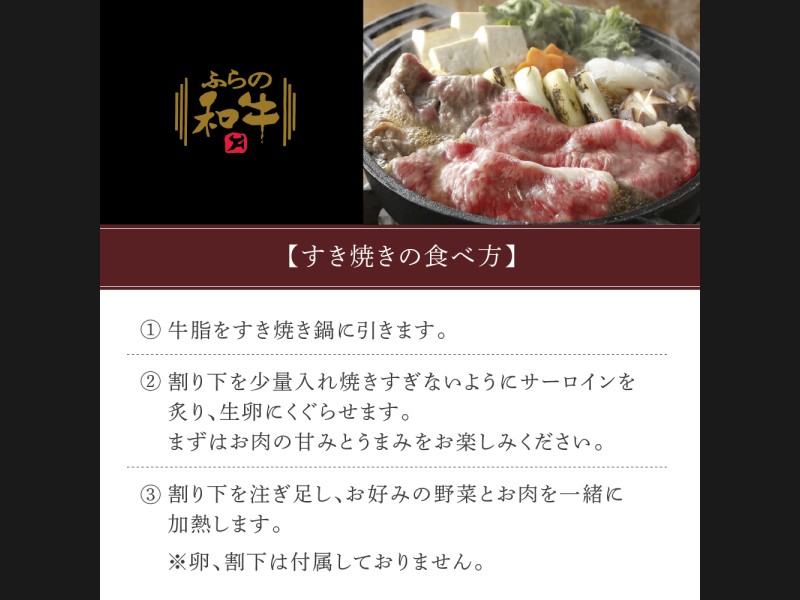 【農林水産大臣賞受賞】 ふらの和牛【霜降りサーロイン】すき焼きセット480g(3~4人用)≪梅≫ お肉 牛肉