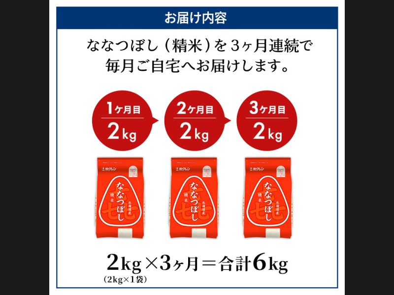 サイズ: ホクレン喜ななつぼし精米2kg(2kg×1袋)を3ヵ月間お届けいたします。