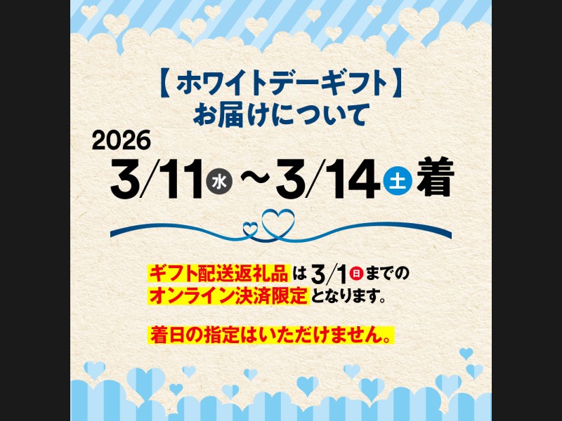 ・お申込状況等により、お礼品ページの表記以上にお届けまでお時間を頂戴する場合がございますのでご理解いただきますようお願い致します。