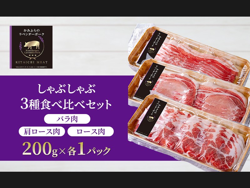・かみふらのラベンダーポークしゃぶしゃぶ3種食べ比べセット[バラ肉・肩ロース肉・ロース肉 200g×各1パック 合計600g]