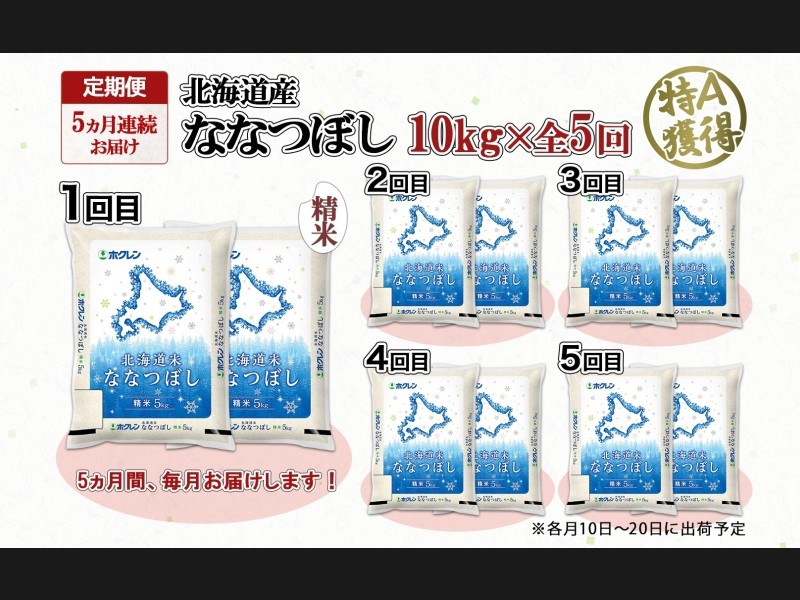 定期便 5ヵ月連続5回 北海道産 ななつぼし 精米 10kg 米 特A 白米 ごはん 道産米 ブランド米 10キロ 5kg...