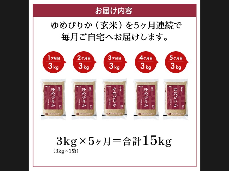 サイズ: ホクレンゆめぴりか玄米3kg(3kg×1袋)を5ヵ月間お届けいたします