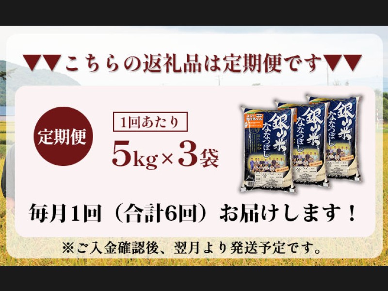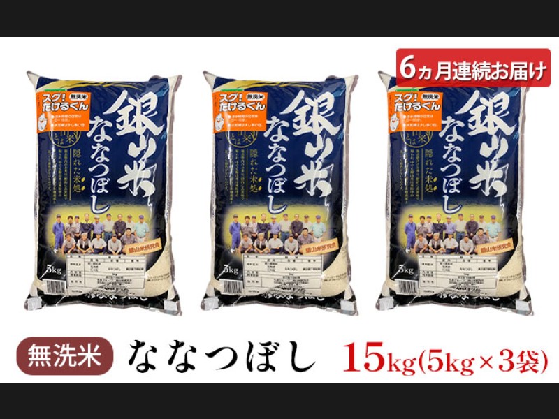 6ヵ月 定期便 銀山米研究会の無洗米<ななつぼし>15kg(5kg×3袋) ライス 白米 精米 ブランド米 おにぎ...
