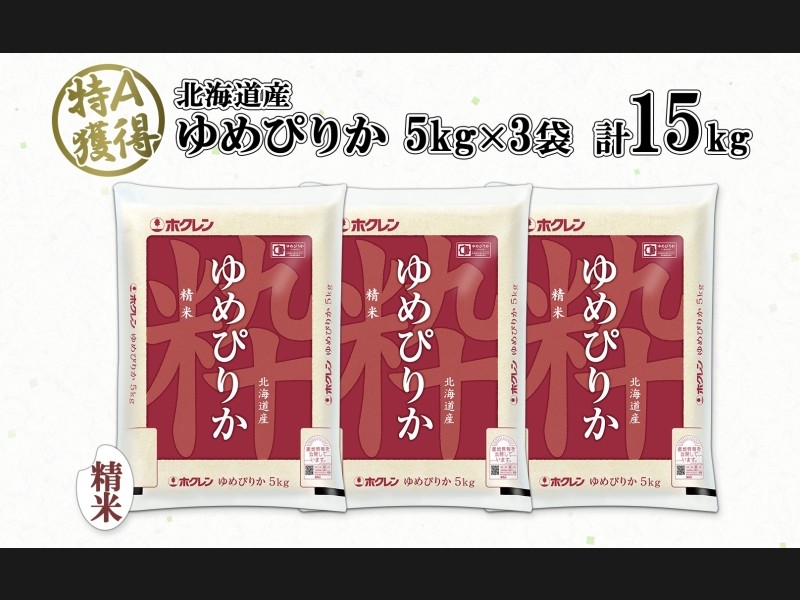 北海道産 ゆめぴりか 精米 15kg 米 特A 獲得 白米 お取り寄せ ごはん 道産 ブランド米 15キロ 5kg ×3袋 ...