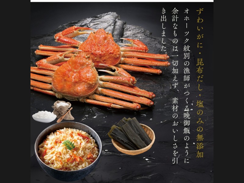 流氷がはぐくむ豊かな海で、毛ガニ・ズワイガニ・タラバガニの三大ガニのほか、ホタテ、鮭などの豊富な魚介類を味わえます。