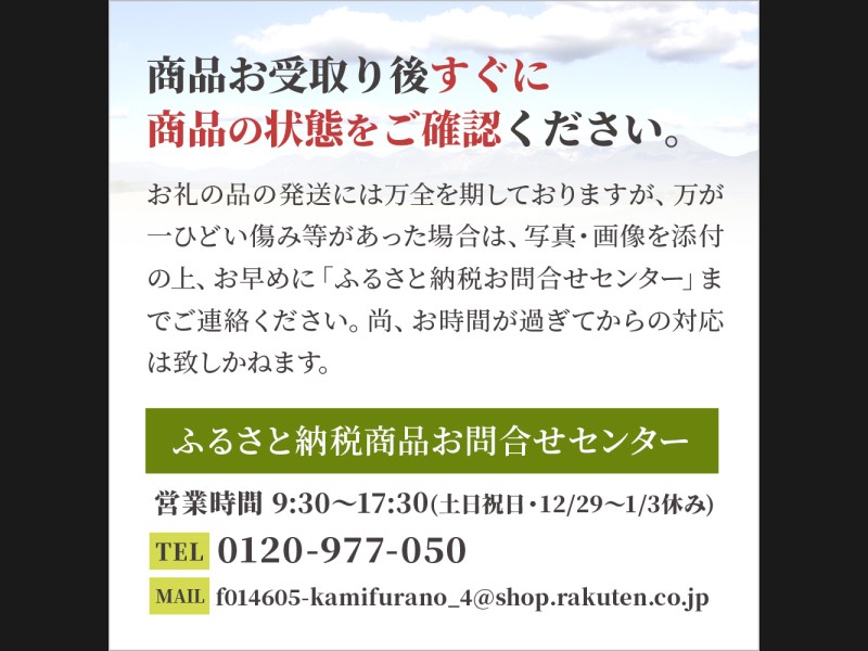 ●お礼の品をお受取いただきましたら、すぐにお礼の品の状態をご確認お願い致します。