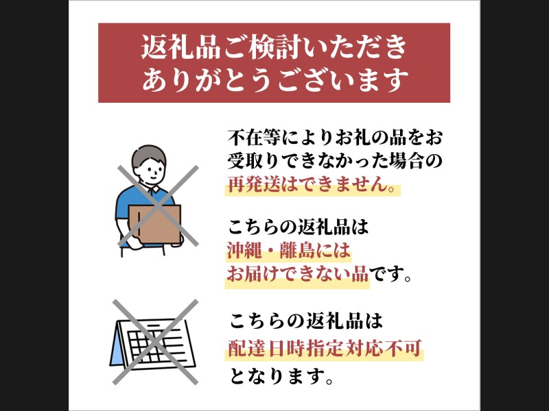 ※ご不在等により商品を受け取れなかった場合の再出荷は致しかねます。