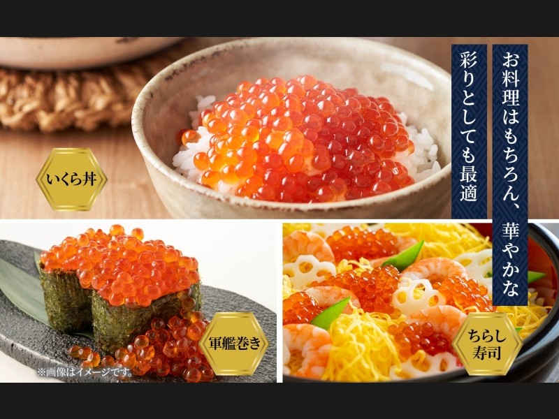 イクラ丼や、手巻き寿司のネタに、温かいご飯にのせてお召し上がりください。