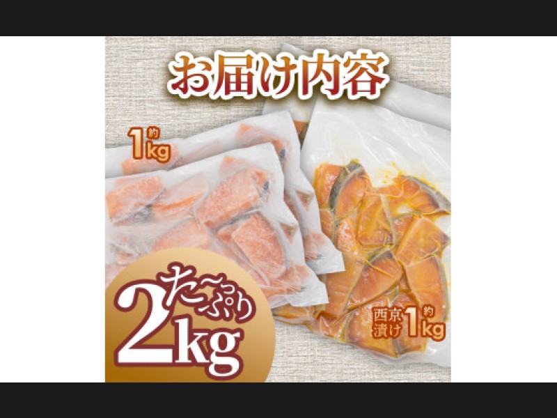 秋鮭ぶつ切り 秋鮭西京漬け 各1kg 合計約2kg 食べ比べ セット 冷凍 小分け 切り身 切り落とし 秋鮭切り...