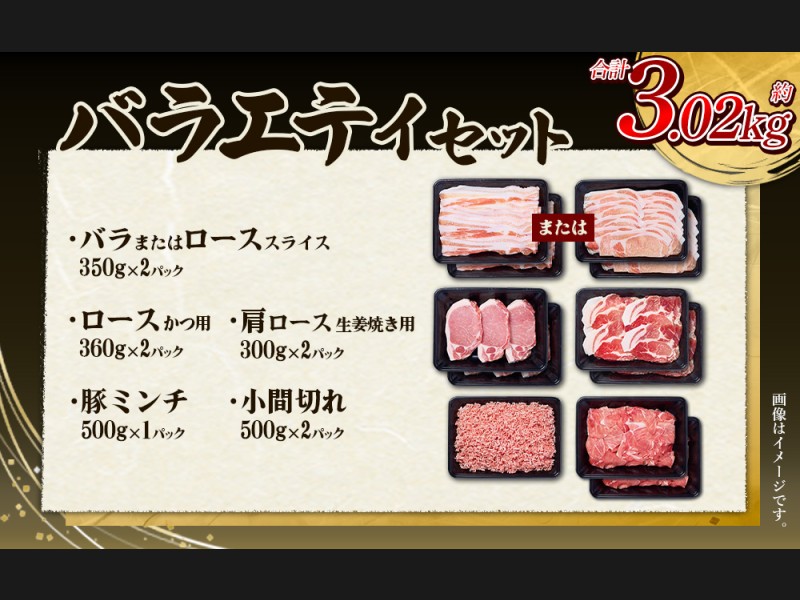 【3回定期便】訳あり いもこ豚 5種盛り バラエティセット 合計3.02kg ×3回 総合計 9.06kg